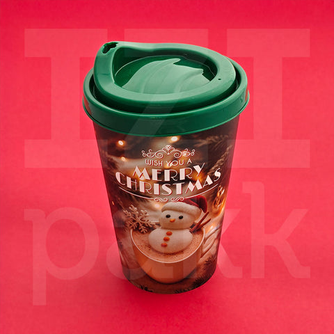 Karácsonyi kávés pohár, négy mintával 0,4 l - 1 db, műanyag fedéllel